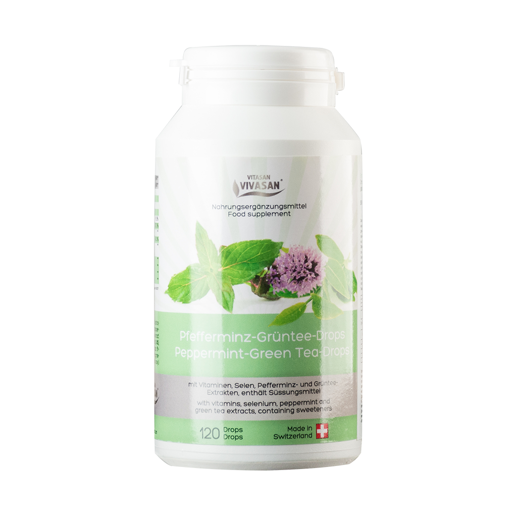 Компанія VIVASAN представляє унікальний продукт — Зелений чай із перцевою м'ятою, отриманий як витяжка з листя особливим методом екстракції. Це суперконцентрований продукт у формі таблеток. Зелений чай із перцевою м'ятою VIVASAN є ефективною зброєю в боротьбі з вільними радикалами. Головну роль у цьому відіграють комплекс вітамінів — антиоксидантів і мікроелемент селен у формі біоорганічного з'єднання. Саме комбінація антиоксидантів — селену, вітамінів Е і С здатна повністю нейтралізувати різні типи вільних радикалів і запобігти передчасному старінню, запальним і онкологічних процесам.